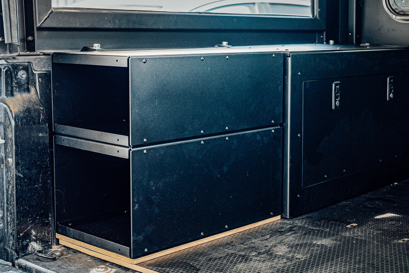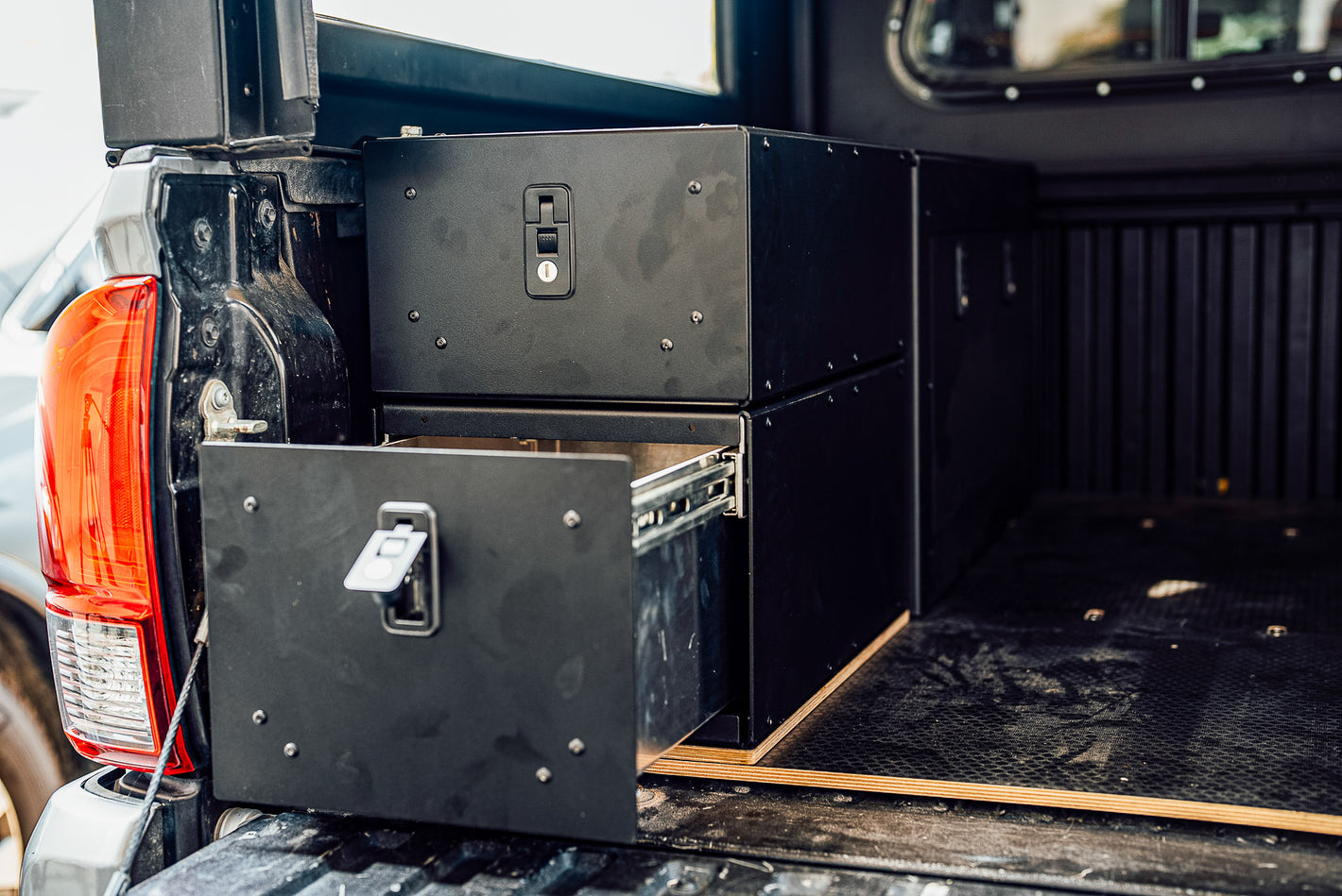 Viato Drawers offer organized and secure storage. Heavy duty slides paired with lockable latches make these drawers durable and ensure your gear stays safe.